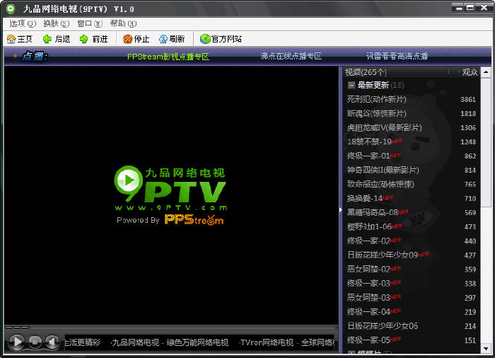 九品网络电视(9ptv)由国内资深网络电视专家经历数年积累研发,是目前全球第一款支持sp/p2p双模式、直播点播的万能网络电视软件产品! 软件采用了先进的聚合软件技术,粹取了目前国内外最流行的ppstream、pplive、tvkoo、qqlive、uusee、沸点网视、tvants、猫扑itv、sopcast、tvuplayer、ppmate等十一种网络电视直播引擎,首度集成了pps,沸点,讯雷看看三大影视点播平台!