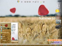恋夏500天电脑桌面主题是xp、vista、win7三系统通用主题,用一张唯美的麦田照做壁纸,两只红色心形气球轻盈地在麦田上方飘浮着,不知要带我们去向何方。