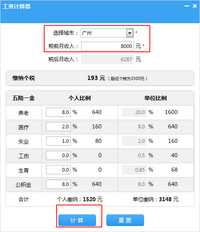 选择城市,税前月收入,点击计算即可