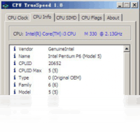 CPU TrueSpeed是一个高精度测试CPU实际核心频率的工具,精度可以达到0.00001MHz。 运行软件后,请点击More来获取更多的信息,第一项为CPU频率检测,可以检测实际运行频率和出厂设定频率。第二项为CPU详细信息,包括ID