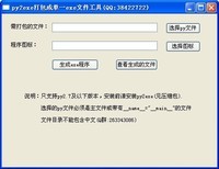 此工具专门用来把python代码自动打包为exe程序,请按照以下流程使用1.请确保你安装了python 2.7版本,安装压缩包里的py2exe-0.6.9.win32-py2.7.exe(如果ide不是python2.7,请去py2exe官网找相应的py2exe安装包)2.双击python打包成单一文件工具.exe,选择相应的python代码和ico(自带了一个),点击生成就行出现故障解决方案:把包里的msvcp90.dll放到python安装目录下的/dlls下,如E:Python27DLLs