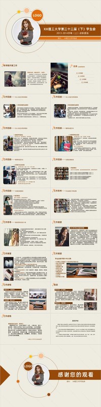 学生会工作总结PPT模板是一套和工作总结相关的PPT模板,有了这个模板,你只需要在模板里面修改信息即可,非常简单方便,zol提供学生会工作总结PPT模板免费下载。