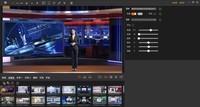 1.背景随意更换,支持全高清1920×1080分辨率的图片、视频等素材; 2.双机位全高清1920×1080分辨率拍摄,主机位用于色键抠像,