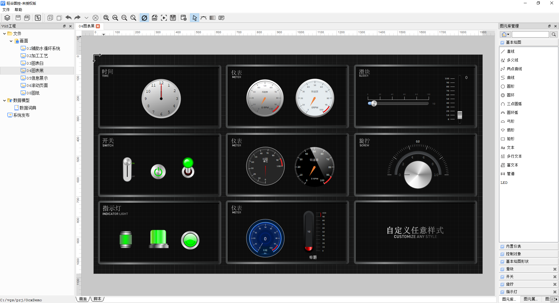 旺谷图控针对软件UI图形界面开发提供了一种高品质、高效率的开发方法,基于美工UI界面设计,结合脚本化编程,可快速将UI设计方案转换成软件产品。旺谷图控可广泛用于C++/Qt/C/MFC/VB等UI界面中的数据图视化展示,也支持多种工业软件如WinCC/Intouch/组态王/力控/LabVIEW /MATLAB 等等的组态画面或HMI人机交互界面的嵌入集成开发。