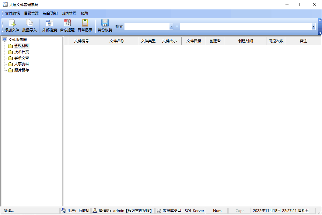 《文迪文件管理系统》 是以电子版文件资料管理需求为出发点,参照ISO国际质量管理体系的文档标准,研制开发的专业电子文件资料管理软件。可以分门别类按目录权限管理文件,构建文件受控管理模式,有效解决文件分散、难以集中、查询费时、整理烦琐、保管不易,使用混乱,重要资料泄露等问题,是文件一体化管理的好帮手,适用于所有党政机关、企事业单位和各类院校、以及个人的文件资料管理等,同时该软件也可作为文档信息电子化管理的工具。 软件特点: 1、界面简洁直观,功能结构清晰,操作简单方便。 2、软件既可单机使用,也能网络环境下使用。 3、支持自定义添加字段,支持按目录个性设置字段。 4、基于C/S架构,文件资源可按权限共享,带全面权限控制。 5、文件存储和传输过程全程进行了加密处理。 6、具备快速索引和迅速检索数据的能力。 7、具有完整的日志跟踪,记录用户的操作过程。 8、无需培训即可快速上手,轻松实现文件管理。
