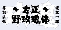 方正野玫瑰体,“野玫瑰”,取名灵感来自于野生蔷薇科花朵所具有的生命力、强韧的力量感、以及可爱的花朵造型。“野玫瑰”字体的制作方法与一般的日文字体制作方法(在文字骨骼上更改设计造型)有所不同。在制作过程中,没有依据现存的文字骨骼描绘,而是像西文字体一样,通过组合各种笔划元素来进行制作。就像漫画中表示“惊讶”时的文字框一样,将不同粗细(粗、中、细)的部件组合起来,形成文字的基本形,再像塑造粘土一样,逐个调整文字部件之间的平衡,使之具备可读性。为了使字符的「量感」保持一致,作者对各个文字逐个做了细节调整,使笔划尖端、交叉部、余白、内部弧线的视觉感保持一致。字体整体处于“看似无法阅读,实则可读”的边界,在各种视觉距离下会产生不同的印象,带给观者一种愉悦的不协调感。