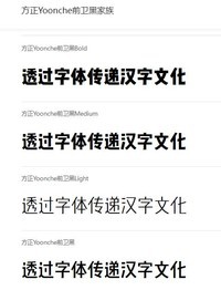 《方正Yoonche前卫黑家族》是方正字库和韩国Yoon Design联合推出的一款中文化多字重字体。基于Yoon Design创造的最真实的韩国字体‘Yoonche’,体现了韩国独特的美学和《训民正音》的精神。