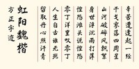 方正字迹-虹阳魏楷,虹阳魏楷(与弘扬魏楷谐音)寓意:象彩虹一样绚丽,象太阳一样灿烂。寄望使用虹阳魏楷的人士充满阳光灿烂,事业蒸蒸日上。将传统书法创作成电子字库,是运用现代电子技术展现中国传统书法艺术独特魅力的创举,也是新时代增强文化自信的有益措施。“书为心画”,毛笔字迹的创作,不仅需要书法家熟练掌握传统书法的笔法、字法、章法,还需要对中国传统文化的深刻理解。 方正虹阳魏楷体的创作就是一段集专注与挚爱、传承与创新于一体的探索之旅。在继承和创新中体悟到弘扬传统文化的使命。虹阳魏楷笔法上选取二王一路“一拓直下”的笔法,做到一笔成形,讲究气脉连贯,强调书写性。字形结构上,以唐楷的紧密规范为基础,融入魏碑的飘逸洒脱。具有独特风格,既规范又活泼,既易于辨认又具有可观性、艺术性。 适用:方正字迹--虹阳魏楷体,用笔灵活多变,方圆兼具,讲究一笔成形。结体紧密,吸纳唐楷精密规范的优点和两晋碑体飘逸的风范。适用于诗歌、文章的排版,以及文化、商业类品牌广告语设计,也适用于各类牌匾。尤其适用于独立,喜与众不同,文艺情怀爱好者,应用于标题,包装,海报,广告,文化印刷品及周边。