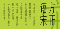 方正语宋,此款字体修长,横竖笔划等宽,字形右稍高,为传统 书刊气息,取古意而立新。