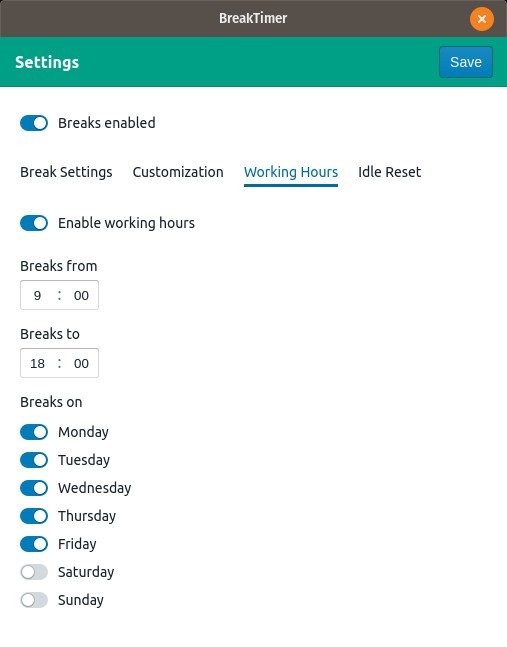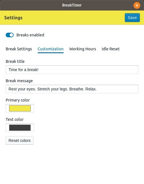 BreakTimer是一款闹钟提醒休息手机软件,解救自身的RSI和眼疲劳,BreakTimer容许你设定可订制的休息時间,并会提示你来休息,BreakTimer是完全免费和开源系统的,适用Windows、macOS和Linux。