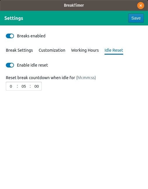 当BreakTimer检验到你没有在电脑上旁时,它能够智能化地重启你的休息倒数计时。