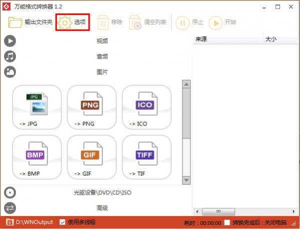 万能格式转换器如何设置輸出部位 打开软件以后点一下“选择项”