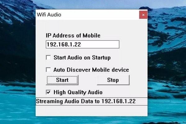 &8195;&8195;运作 WiFiAudio Server 后,必须填写手机上的 IP 地址,一般在手机的设定网页页面、互联网、Wi-Fi 中能够见到,填写地址后,点一下 Start: