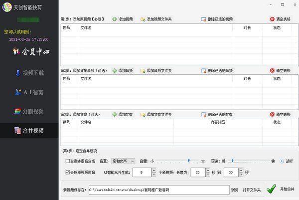 4.两段视频一键合拼,创意文案转语音识别,清除视频之中的音乐背景等。
