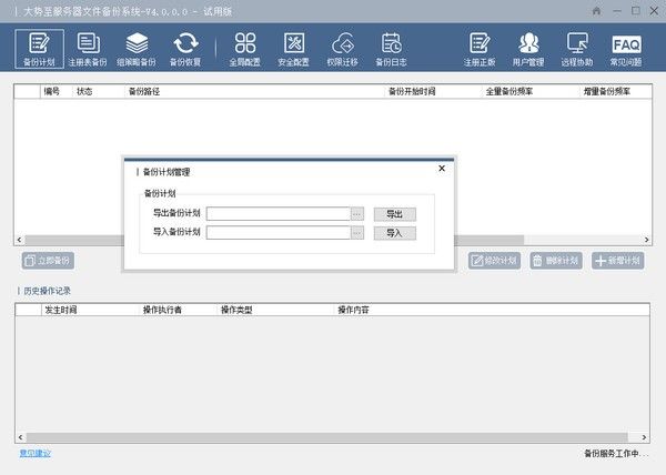 许多企业服务器上,一般会建立许多账户,并进行复制文件浏览权限配置,一旦系统毁坏、无法正常启动而要求改版系统时,将会给网络管理带来很大的任务量。而本系统能将服务器上的账户、账户和文件夹访问限制开展导出来备份,那样客户改版系统后能直接把这些备份数据导入,导进以后只需进行简单设定就可以恢复正常此前的账户及其文件访问限制设置,进而在很大程度上缓解了互联网管理者的任务量,防止了改版系统所带来的业务流程终断风险性;
