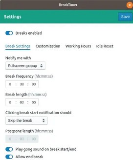 BreakTimer允许你配置休息的频率和时间。
