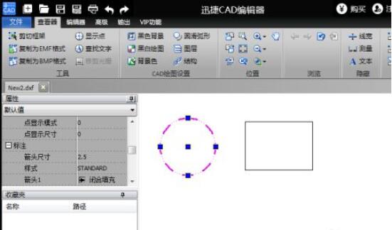 首先通过迅捷CAD编辑器打开图纸,若要把圆形对象的线宽、线型、颜色等属性应用到右侧的矩形对象上,需选择圆形对象。