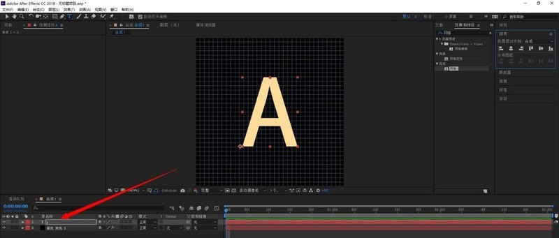 1.首先新建一个文字,输入任意字母,调整位置和大小