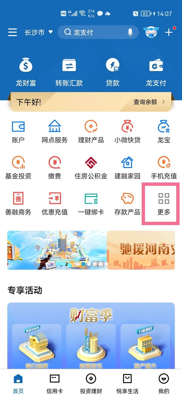 1、在建设银行首页点击【更多】进入全部应用页面。