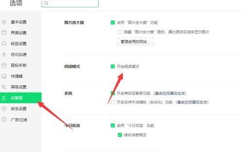 3、接着点击实验室,进入页面后点击勾选开启阅读模式即可,如图所示。