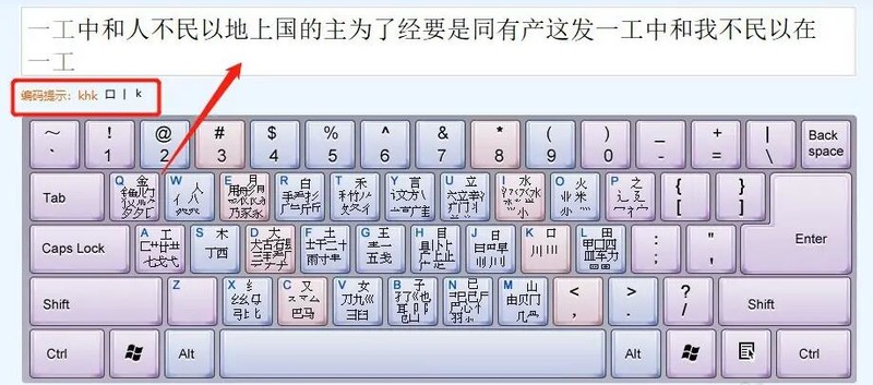 4、接着跟着页面上的编码提示练习,熟悉键盘和字根,很快就会掌握五笔打字了,如图所示。