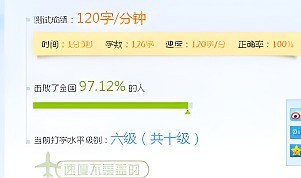 4、最后,在测试完成后会出现相应的打字成绩。