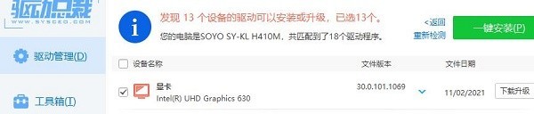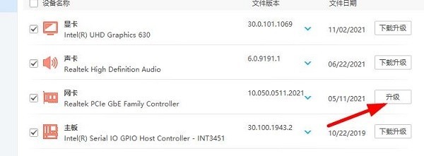 第二步:选中需要升级的驱动,点击升级,如图所示。