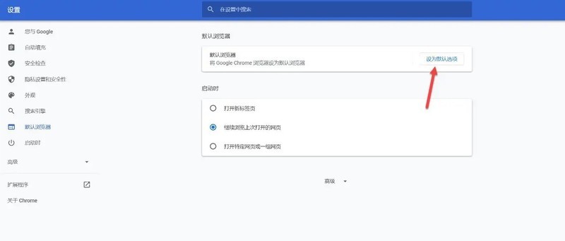 第四步:点击设为默认浏览器,这样电脑每次在打开浏览器时就会直接选择用谷歌(如图所示)。