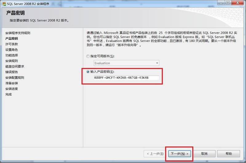 8.选中输入产品密钥并选择“下一步”,如下图所示。