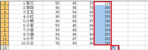 第五步:点击填充框的下拉菜单。进行总分填充(如图所示)。