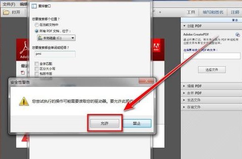 在提示框中,点击“允许”,即可查找包含此关键词的pdf文档。