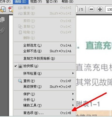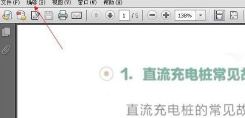 首先,我们在Adobe reader中打开一个文档,然后点击页面左上角菜单栏的编辑,如图所示