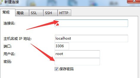 这样就会弹出了一个新建连接的窗口的界面中,在连接名中输入名称,而在主机名在本地的数据库,所以使用localhost即可,密码为空即可。