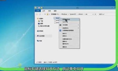 在打开的窗口中找到“hosts”文件,右击选择打开方式。