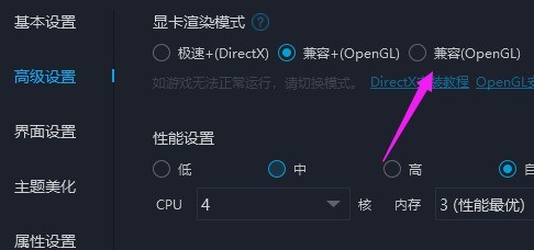 我们就可以将显卡渲染模式设置为【兼容】,这样就显得不会那么卡,如图。