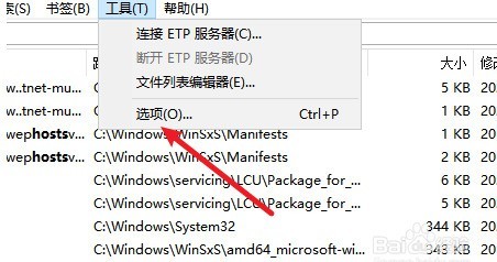 在工具选项的下拉栏目中,选择箭头所指的选项栏,来进入到设置页面。