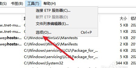 在工具选项的下拉栏目中,选择箭头所指的选项栏,来进入到设置页面。