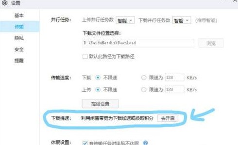 打开“下载提速”,点击“去开启”