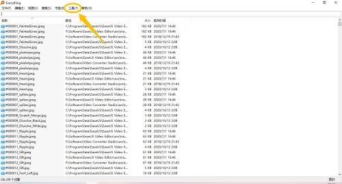 第一步:在“Everything”主界面中,点击上方的“工具(T)”菜单项。