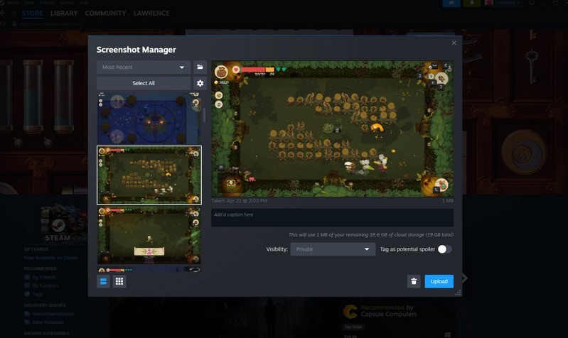 截图管理器已完全翻新,现为响应式,您可以在大小缩略图中进行选择,可以不按照游戏查看最近的截图,还可以管理在线和本地截图。