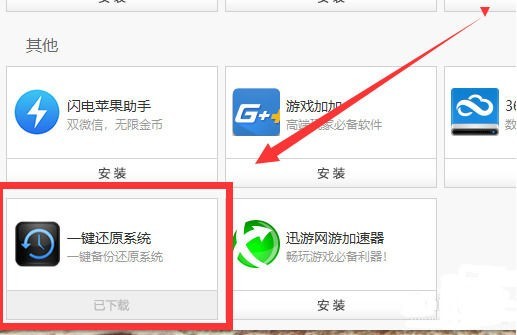 2、装机必备下找到一键还原系统,点击(如图所示)。