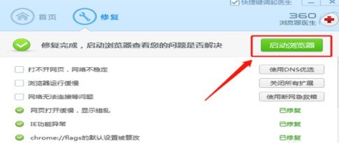 修复完毕,可以选择【启动浏览器】来验证修复效果。