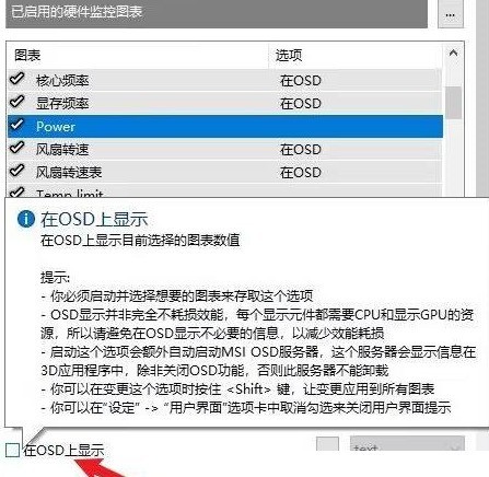 2、然后在微星小飞机软件设置界面,点击这里的OSD上显示。