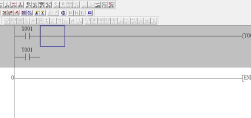 第五步:我们现在按下x1那么y1就会得电。但是松开x1,y1就会断电。我们可以选择并联一个y1的常开触点。
