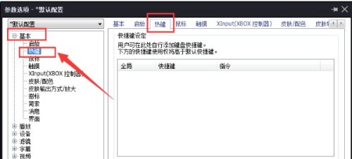 第二步:接着在“选项”界面左侧的“基本”中打开“热键”,如下图所示。