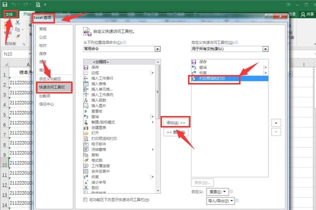 3.如果没有找到的话,也可以点击文件菜单的选项设置,在快速访问工具栏目中导出隐藏的自定义命令添加即可