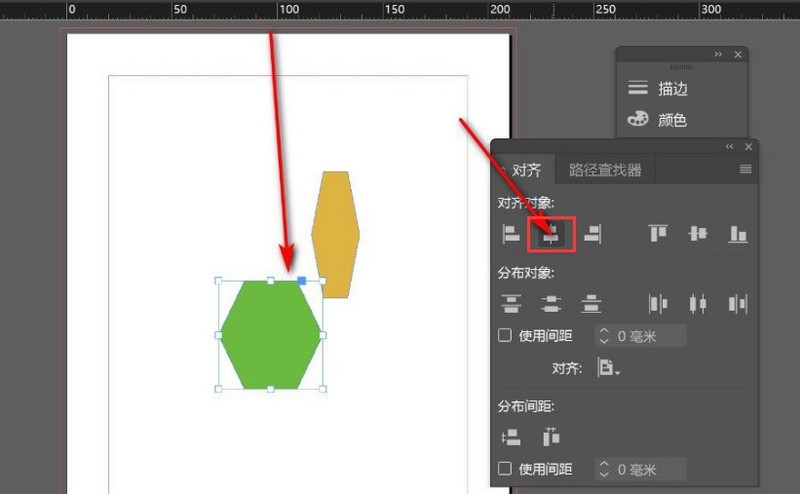 1.首先,在InDesign软件中,鼠标点击选中图形后,在窗口菜单的对象和版面栏目中,点击对齐按钮