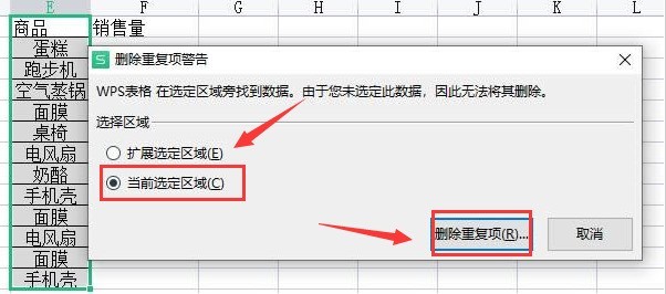 第一步,选中需要处理的单元格内容,在数据菜单的重复项栏目中,点击删除重复项按钮