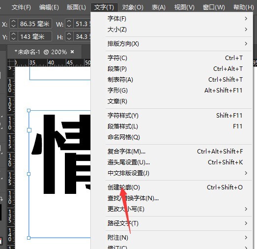 3.接着,先将文字转曲,然后点击左侧的渐变工具
