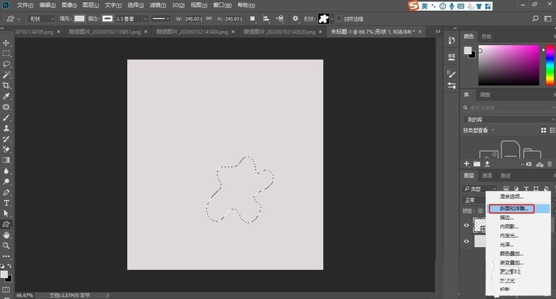 2.Ctrl+enter建立选区。打开斜面和浮雕。